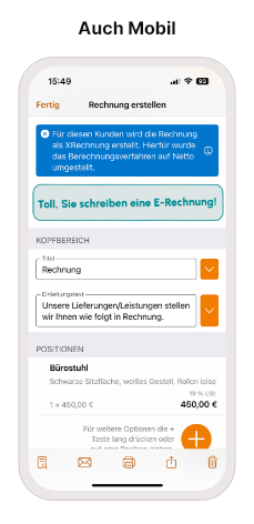 Alle Finanzamt-Pflichten immer automatisch umgesetzt, z.B. die neue E-Rechnungspflicht seit 1.1.2025