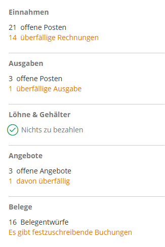 „[…] ist mit einem Dashboard ausgestattet, das wichtige Kennzahlen wie Banksalden, Außenstände, Einnahmen und Ausgaben zusammenfasst. Das Programm lässt sich mit zahlreichen Anwendungen erweitern, beispielsweise mit einer Zeiterfassung.“