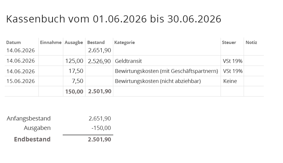 2. Lexware Office berechnet automatisch den Bestand Ihrer Kasse