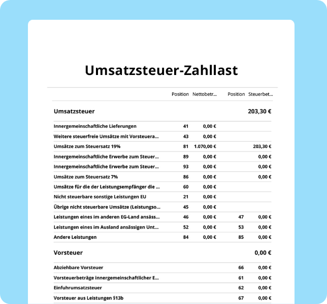 1. Mit einem Klick Umsatzsteuer-Zahllast berechnen und online via ELSTER ans Finanzamt übermitteln